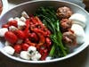 From the prepared foods case I chose some meatballs, broccoli rabe, roasted peppers, mozzarella and tomato salad and chicken salad. The meatballs fully delivered. Fully flavored and heavily laced with cheese and tomato, these were addictive and good enough to be enjoyed cold (though much tastier when hot). The gentleman behind the counter was kind enough to provide a small container of tomato sauce without my asking.
