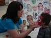 Seven-year-old Katrina Pratsos seemed to really enjoy playing with the hula-hoops brought in by Leah Troiano of . Troiano makes unique hula-hoops specifically for their individual hoopers. She had bought a few hoops at a store and they quickly fell apart, so she began designing her own (less breakage, less waste).