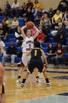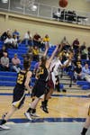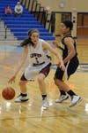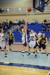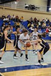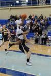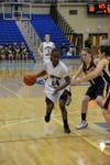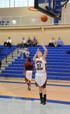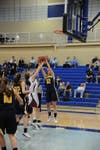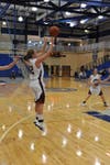 The disappointing performance didn't appear a matter of jitters for the Aces. They came out strong early, demonstrating they could match the cat-quick Blue Devils athletically by consistently beating them off the dribble. Rosie Stahler, Sheba Hall, and Lila Jones, who led the Aces with 14, each side-stepped their defender for uncontested first period layups.
