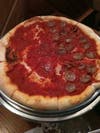 The pizza was delicious. I loved the hearty crust and the savory tomato sauce. The layer of cheese in the middle was a welcome change from typical East Coast pizza. The round slices of sausage were thick and flavorful. I could taste the herbs and spices in the meat.