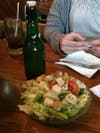 The salad was large and brimming with romaine and iceberg lettuce, tomatoes and croutons. I loved the beer bottle carafe of dressing that was brought to the table, as it reminded me of the pizza places in Chicago. The house dressing was a simple vinaigrette.