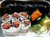 The service was professional and friendly, my order was waiting for me when I arrived and the to-go bag had packets of low-sodium soy sauce, chopsticks and napkins. The interior of the restaurant is clean and the sushi bar is well lit, catching your eye as soon as you enter the space. I was impressed with the food here, and will be sure to come back again. Next time I may even try some of the Thai offerings, but rest assured, I will still order off the sushi menu. It's too good to pass up.