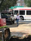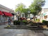 The entire courtyard and pedestrian mall will be replaced with stained concrete, brick and pavers (while stores and the walkway itself remain open to the public).The first phase is the perimeter, underway now, with the interior to be complete by early November—a date certain has been complicated by Hurricane Irene and the other heavy rains over the past few weeks.