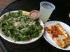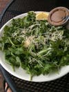 I ordered the arugula salad and as promised it was drizzled with olive oil and topped with fresh shredded parmesan. There was a juicy lemon wedge waiting to be squeezed all over the salad but I opted out and chose to dress my salad with the balsamic vinaigrette. A well made vinaigrette has body, balance and flavor. When I say body, I mean it's just thick enough to lightly coat your greens. The balsamic vinaigrette here had the consistency and look of chocolate pudding. The culprit was too much oil. As you whisk oil into the acidic mixture when making a vinaigrette it gets thicker and thicker until it "breaks", the oil and acid molecules are no longer united and separate resulting in a liquid where you can clearly see the distinct ingredients. There's a fine line between a super thick emulsion and its breaking point. Tips for thinning out a vinaigrette include simply adding more water or acid and then seasoning accordingly. I plopped my dressing onto my arugula and did my best to toss the salad and evenly coat the greens. The salad was delicious and extremely large (I couldn't finish even half of it). Unbelievably fresh and crisp greens with nutty and savory shredded parmesan--a classic Italian salad, a perfect accompaniment to a light pizza lunch alfresco.