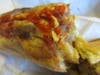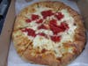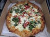 Opening the lid to the first of two boxes, I was instantly delighted at the man’s recommendation. The Felicia’s special was a venerable work of art; green spinach, fresh tomatoes, garlic and mozzarella cheeses topped the thin crispy wood grilled pizza crust. The smell was intoxicating and the taste addictive. The crust itself was coated in coarse flour; I’d say something like 40-grit sandpaper, giving the pie a wonderful texture, and my shirt a coating of crumbs.
