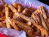 Our fries and sandwiches arrived moments later. The basket of crispy, golden French fries that I ordered looked phenomenal sprinkled with thick chunky parmesan and garlic.