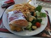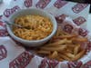 The cheeseburger with cheddar featured an average-sized all beef patty, lettuce, tomato and Ruby sauce (Thousand Island dressing, basically). It's a solid burger, cooked all the way through ... reliable. The fries were hot and crisp.