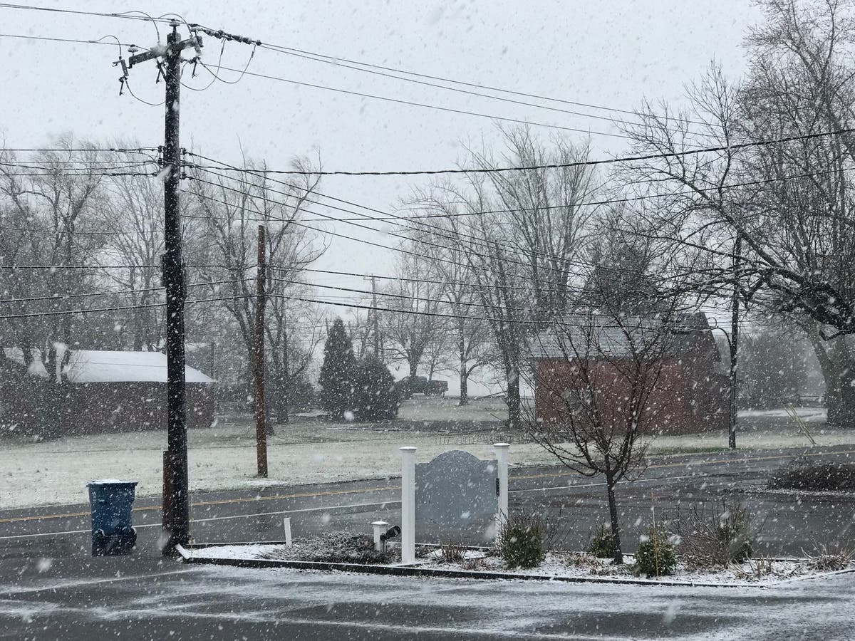 Large flakes of snow began falling north of Philadelphia by mid-morning, and winds increased. The snow is coming in the form of large, wet flakes.