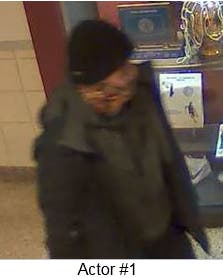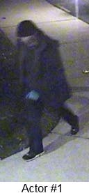 One suspect was wearing a dark winter hat, black or blue jacket with a scarf, dark pants, and dark shoes with white trim. The suspect was also wearing blue latex gloves and concealed their face with a multi-colored scarf.