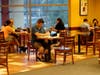 About 35 customers were in the spacious store at about 8 p.m. Monday, lingering in the air-conditioned stacks, reading in leather chairs, or having a coffee and a bite upstairs in the Seattle’s Best café. There, customers read newspapers and magazines, worked on laptops or chatted with a friend, as dusk settled over the Wynnewood Train Station, visible past the parking lot and across East Wynnewood Road.