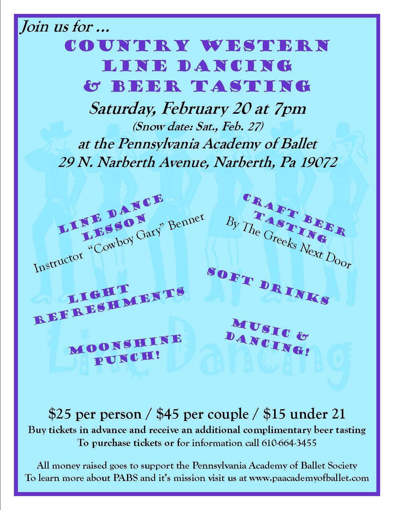 Join us for a fun night of country line dancing, beer tasting and lite refreshments.