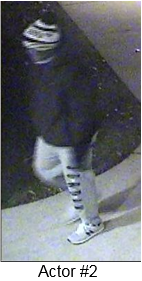 One suspect was wearing a dark winter hat, black or blue jacket with a scarf, dark pants, and dark shoes with white trim. The suspect was also wearing blue latex gloves and concealed their face with a multi-colored scarf.