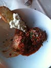 We sat down and our bottle of red (a lovely Beaujolais) was quickly opened and poured for us. The chef's mother played hostess and greeted us warmly and sincerely. Soon after a plate of bright green pesto was brought out with thick slices of bread. The pesto hit all the right notes, I could taste the fresh basil, garlic, parmesan and rich olive oil. My dining companion hates basil and even he enjoyed this wonderfully layered pesto.