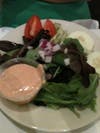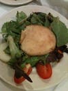 The goat cheese salad featured a warm hockey puck of goat cheese lightly crusted with bread crumbs. It, too, sat on a bed of mesclun greens tossed in a raspbery vinaigrette.