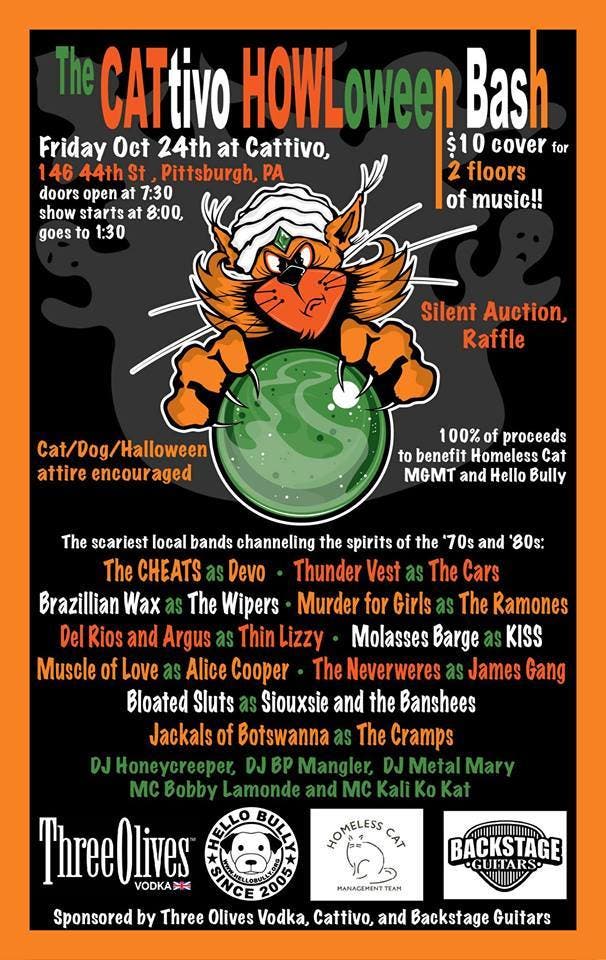 It’s the The CATtivo HOWLoween Bash!!! Join us for the wildest Halloween party of the year AND support two awesome causes: Hello Bully and Homeless Cat Management.