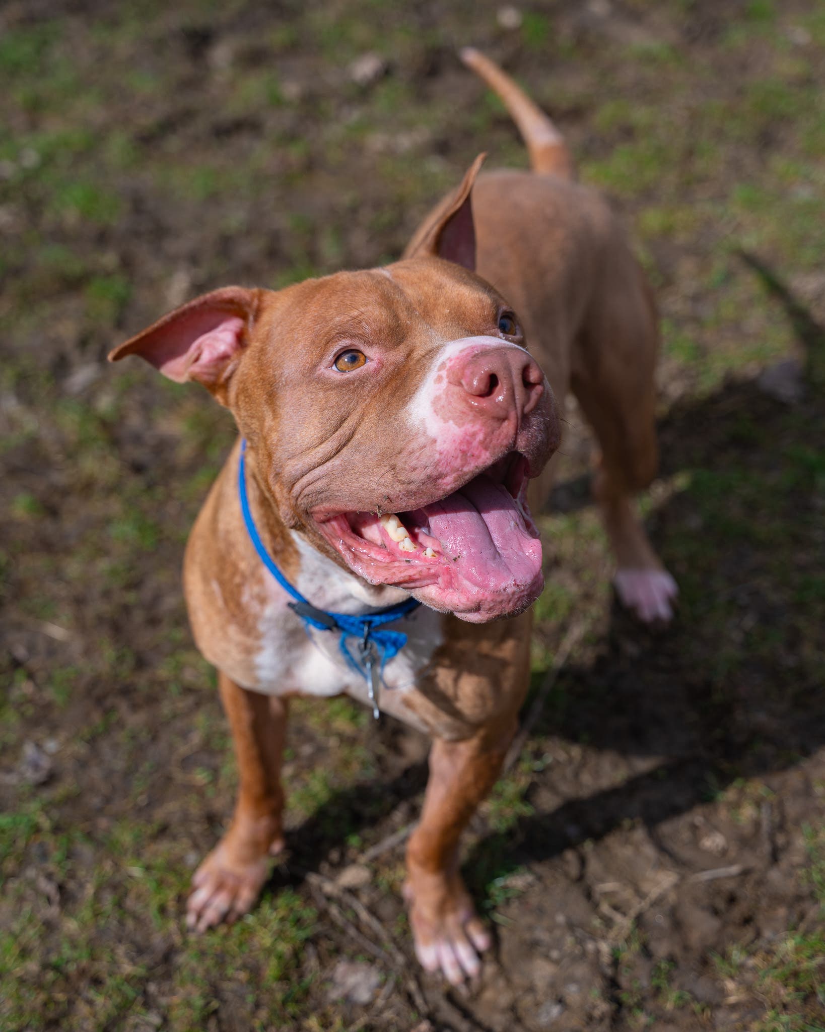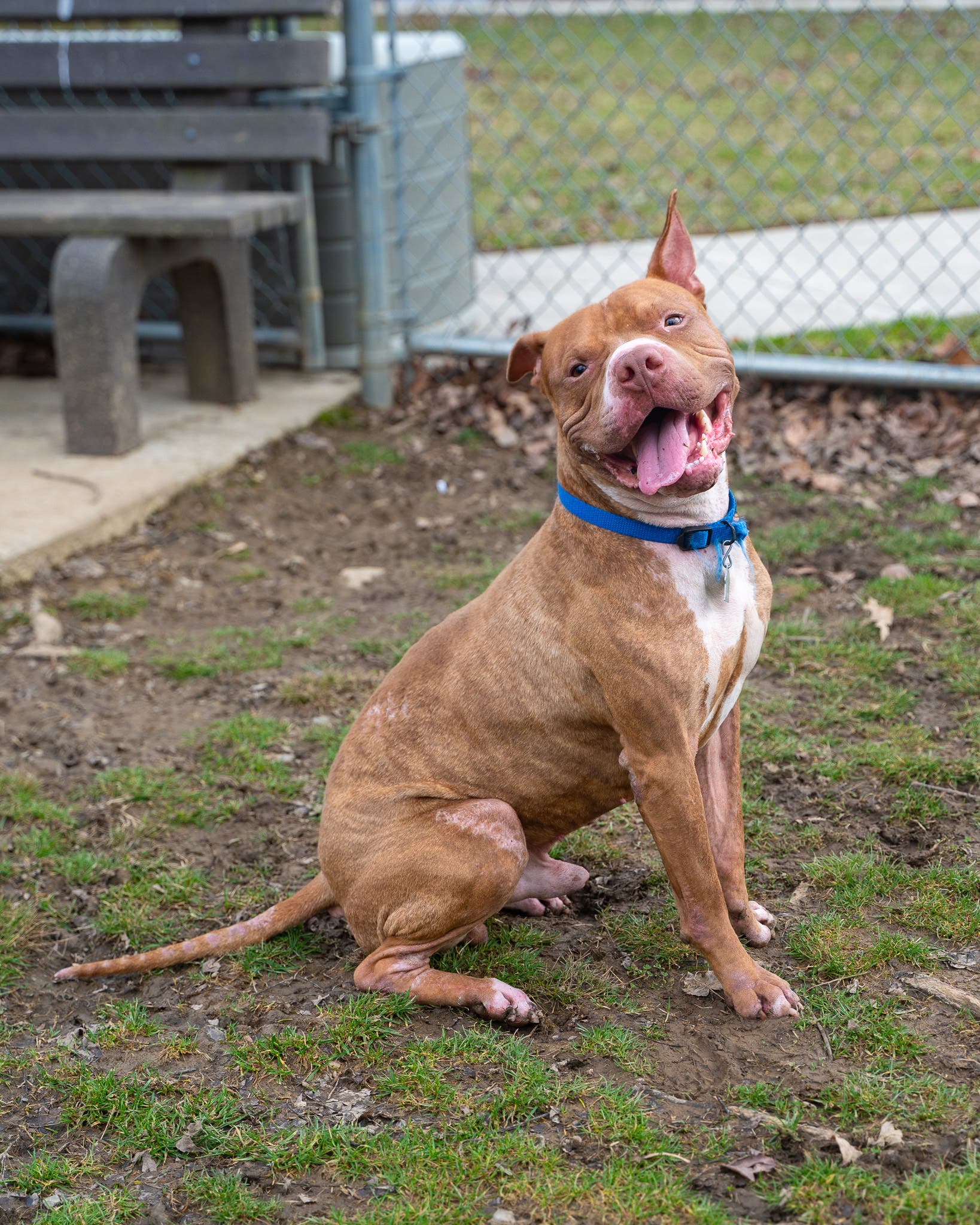 Tomato Pie greets human companions with enthusiasm and truly loves outdoor play with his favorite toys. His tail wags for joy at the site of toys and is reminiscent of a helicopter spinning.