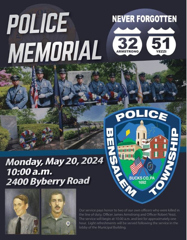 BENSALEM TOWNSHIP, PA —The township will hold its annual Police Memorial Service on Monday to remember fallen officers James Armstrong and Robert Yezzi.