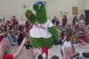 The Phanatic acted out scenes from his new book. "The Phillie Phanatic’s Galapagos Islands Adventure," as Principal Eileen Martin read from the book.