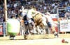 Expect to see a lot of adrenaline-pumping action, as cowboys attempt to ride 1,000 pound bucking broncos and 1,800 pound Brahma bulls for up to eight seconds or as long as they can hold on. These animals are huge, and if you can imagine them traveling at 30 miles per hour while jerking you up and down, try to imagine how hard it would be to wrestle a steer or a rope a calf while that's happening.