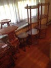 French Provincial Dining Room Suite, Mahogany bedroom furniture, Sheraton Chest of Drawers, Victorian and French Parlor tables and chairs, Mahogany carved tables, Mahogany slant front desk, Carved Asian Chest, Chinese inlaid dressing screen and tea table, Oil Painting by Jerry Quier, Persian/Chinese Carpets, Hoosier type kitchen cabinet, Vintage Bar, Grape and Vine cast patio set, concrete lawn and garden planters, Dinner Bell on pole, crocks, jugs, cash register, vintage and industrial sewing machines, leather working machines, leather, leather tools and brass dies, shoe lathes, cobblers tools, stitching horse,
