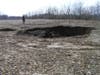 She says the expanding sinkhole in her backyard is one of 458 such holes found along the Bushkill Creek since 1999. The creek is a popular warm-weather destination for kids.