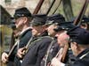 A Civil War Encampment sponsored by the Historic Bethlehem Parnership wrapped up today with troop drills and demonstrations of life in the 1860s. Against the backdrop of the Colonial Industrial Quarter, the 153rd Pennsyvania Volunteers marched off to board the train to Harrisburg after receiving a regimental flag from the ladies of Bethlehem.