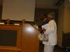 Kamal Kamara and his mother initially stood at the podium together to address the Board of Commissioners, but they were asked to sit down and wait until the official public comment period switched to a discussion about non-agenda items.