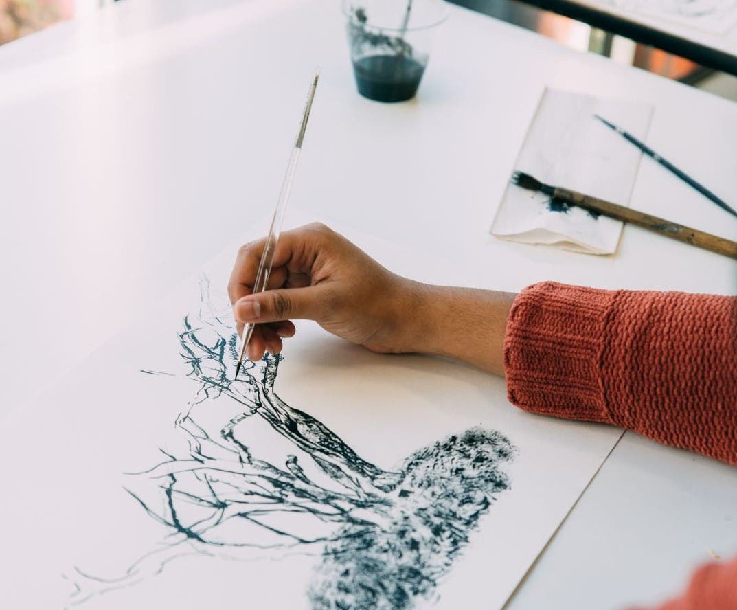 Paint scenes from nature surrounding the Art & Design Center using Sumi ink (black ink painting) techniques including brush and pen, where the emphasis is placed on the beauty of each individual brush stroke.