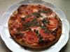 I arrived home, moved the rack to the bottom and then pre-heated my oven to 425˚. I placed the pizza on the parchment paper on the rack and let it bake for 15 minutes. It wasn't quite the color I wanted, so I let it bake for two or three more minutes. The pizza was crisp along the edges, cooked well on top but a bit underdone on the bottom. Next time I think I might remove the parchment and bake directly on the rack, halfway through baking time. The pizza was decent--the tomato sauce tasty, the crust thick and doughy, and there was plenty of basil. The fresh mozzarella melted thoroughly.