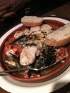 For our entrees we had the salmon Florentine, the seafood di mare and the shrimp rossini. The Norwegian salmon filet atop "wilted spinach with white wine, caper and lemon sauce" was cooked all the way through, but the spinach was not. What arrived at the table was a cooked piece of fish on top of what appeared to be a pound of fresh spinach leaves. I didn't mind it too much because I love spinach--raw and cooked, but I would imagine that others would have been disappointed that their "wilted" spinach was completely raw. The sauce was bright and acidic--a great counterpart to the richness of the salmon.