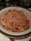 We ordered some chianti, water and iced teas and pored over the menus. Two of us began with a side salad and one of us had the minestrone soup. Many of the main course entrees come with soup or salad although the pastas and pizzas do not. The salad was good. The vegetables (cucumbers, tomatoes, olives) and greens (mixed greens and frisee) were fresh and crisp, and I loved the sprinkling of parmesan cheese that added a slight saltiness to each bite. The house Italian and balsamic vinaigrettes were well seasoned.