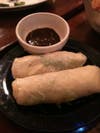 The extensive menu even includes dessert. I ordered aggressively and directed the server to just bring things out as they were made. First to arrive were "summer rice paper with shrimp", a.k.a. summer rolls, and the charbroiled sliced BBQ pork baguette or banh mi. The cool summer rolls (they are not fried) were brimming with rice noodles, lettuce and some small shrimp. They were a refreshing start to our meal. The dipping sauce provided a rich and savory note, although I wish there were crushed peanuts on top.