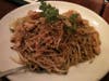 The spring roll with rice noodle (bun) was very good. A mountain of noodles covered diced cucumber, lettuce, pickled carrots and daikon, ground peanuts and even some slices of fried garlic. Fried spring rolls which were cut in half were place in a ring on top of the noodles. They were crisp and delicious without or without the tangy dipping sauce. A successful bite incorporated all of these components. This rendition of one of my favorite Vietnamese dishes was among the best I have tried. The pad thai was good (even though not actually Vietnamese), but since it came out last we barely put a dent into it. My friend's husband enjoyed the savory and sweet noodles bursting with vegetables and that slight tang from the tamarind and lime.