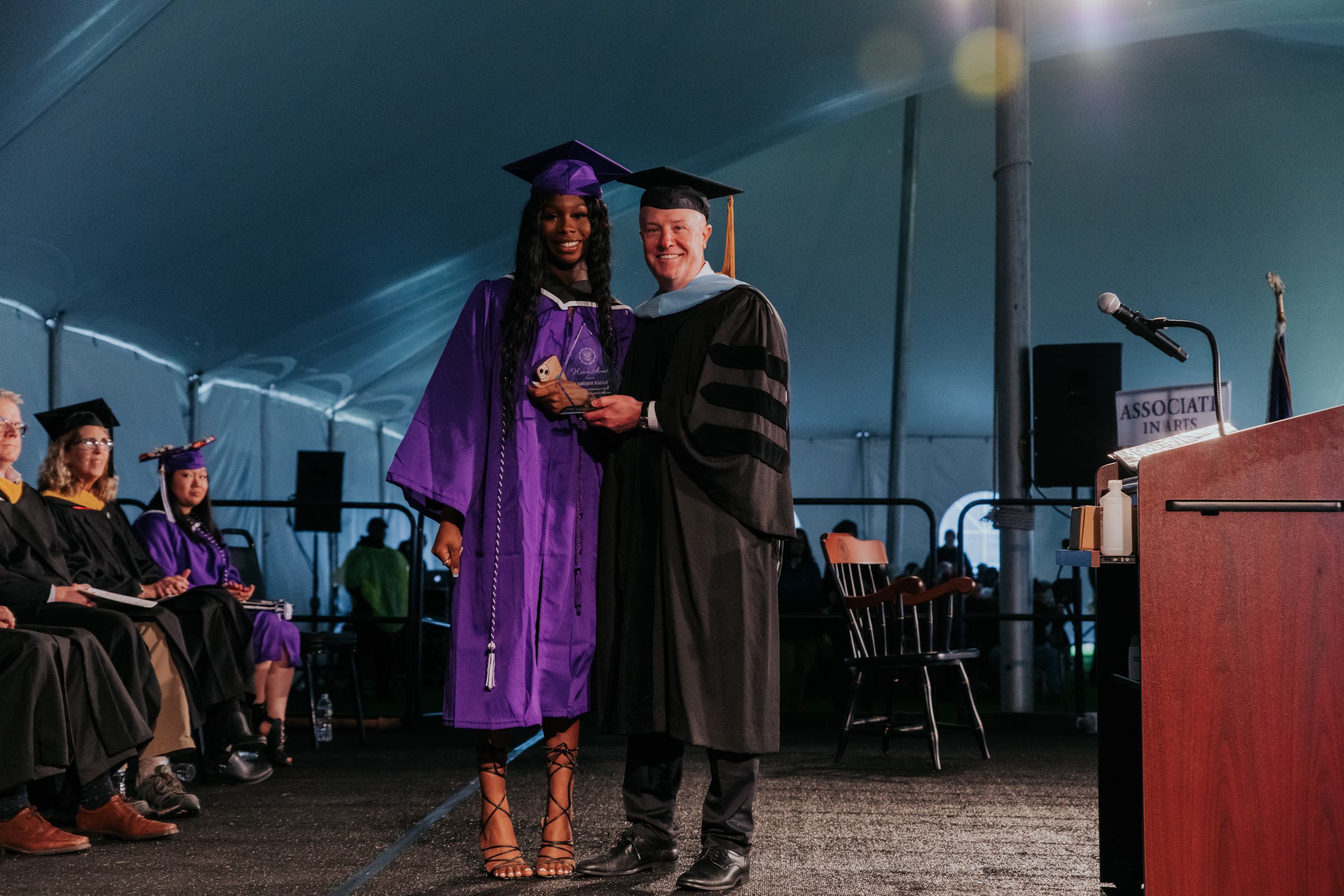 Kadidjah Kallo, a Business Management major, received the Harcum Award from Dean of Student Life Dr. Ed Kovacs on Saturday. He said she demonstrated exceptional academic achievement