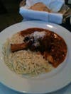 For our shared entrees, we had the moussaka ($15.95, grilled eggplant and potatoes, baked with beef and bechamel sauce) and the lamb shank special with orzo. The moussaka was rich and comforting, definitely more of a cold weather dish. I would liken it to a hybrid of shepherd's pie and casserole, Greek style. The lamb shank was lovingly prepared in a sweeter tomato sauce (probably sweet onions) so that the meat was fall-off-the-bone tender and the orzo cooked a perfect al dente. There was no mushiness in this pasta side. The Cotes du Rhone went very well with the salty saganaki and our entrees (especially the lamb shank).