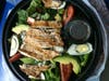 I ordered a Cobb salad to go and it arrived with a generous portion of grilled white chicken breast, plenty of ripe avocado, bacon and crisp looking greens. My only complaint was the dark grey ring around the egg yolks on the salad. I know that they are not harmful in any way but it’s always disconcerting for me to see that. The balsamic vinaigrette was broken but still tasty.