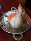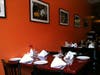 The decor is marked by earth tones, with orange walls, wooden furnishings and plenty of photography. There are numerous color photos of scenes from India which I felt added to the ambiance of the dining area. In addition, there are white cloth napkins which lend an air of elegance to your meal. You can see directly into the kitchen, which always puts my mind at ease. There are huge windows that allow in plenty of daylight and allow for great people watching if you're dining alone.