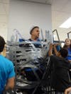 The challenge was to see if students could provide enough tape and put it in the right places to keep Helinksi attached to the pole with duct tape when the chair he was standing on was removed. Apparently the word spread quickly when Helinski fell down in 1.8 seconds after the first lunch period.