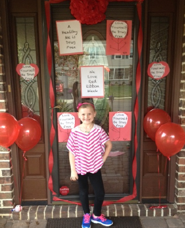 Sarah, a student at Struble Elementary School, won her school’s Red Ribbon decorating contest for her balloon and love note doorway creation. It is all part of the National Family Partnership’s annual Red Ribbon photo contest that inspires families, schools and communities to get involved with drug education. This year’s contest theme is Love Yourself. Be Drug Free.