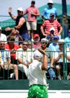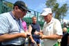 Pro golfers John Daly and Rocco Mediate laughed and gave tips during a shootout held for fans Wednesday at the Mylan Classic in Southpointe.