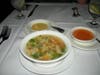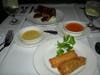 The highlight of the evening arrived first, the wonton soup. Also arriving with the soup and ahead of the spring rolls were the typical Chinese accoutrements—mustard and duck sauce—and these were some of the best I’ve tasted.