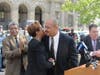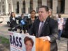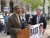 District Attorney Seth Williams and others announced endorsements for Bass outside of the Court of Common Pleas Family Division on Vine Street on Monday.
