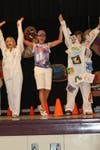 Much to the delight of the elementary students, their teachers competed in tricycle races using three-wheelers they brought from home.