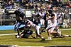 Another Titans interception 28 seconds later had them in field goal range, but the kick fell short by 10 yards. As the clock ticked down, SV's Brown connected with running back Forrest Barnes on several plays before running the ball in the end zone himself with less than two minutes to go. After Michael Denny's extra point, the score at halftime was 7-7.