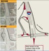 Currently, westbound drivers on Route 228 who want to get onto I-79 in either direction must turn left across traffic to get onto the Interstate’s onramps. While they’re making those lefts, the through traffic on 228 is held back waiting—resulting in a traffic tangle.