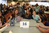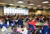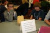 For the event, the teens for lunch. They were assigned temporary tables for the meal by drawing random numbers out of a box. Each table also was stocked with discussion questions that the students can ask each other in hopes of getting the conversation going.