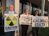 Signs in hand, members of Marcellus Outreach Butler positioned themselves outside Seneca Valley before the start of Monday’s school board meeting to protest potential drilling for Marcellus Shale on district property.