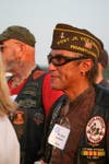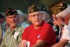 As the men arranged themselves into formation, a few joked about lost marching skills. When the marching band began to play, the veterans entered NexTier Stadium to cheering crowds.