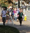 Small crowds gathered at the corners of each side of the street outside of the IBEW training center. An elderly woman stood with her cane and said, “This is the only time I’ll get to see the president—I don’t have another 60 years.”