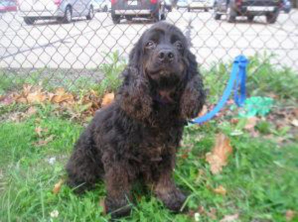 He was adopted and now was found running the streets and picked up by animal control. He was badly matted and flea infested. He has had a bath and had most of the matts cut from his coat but he still has a way to go with his grooming.
